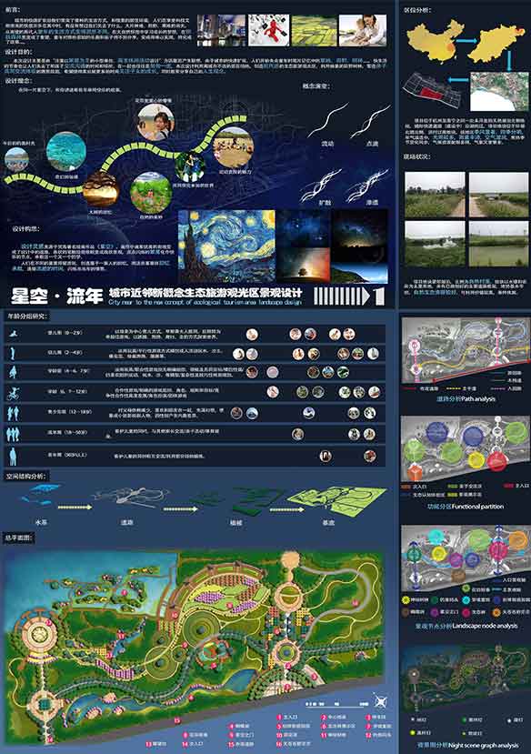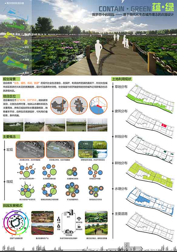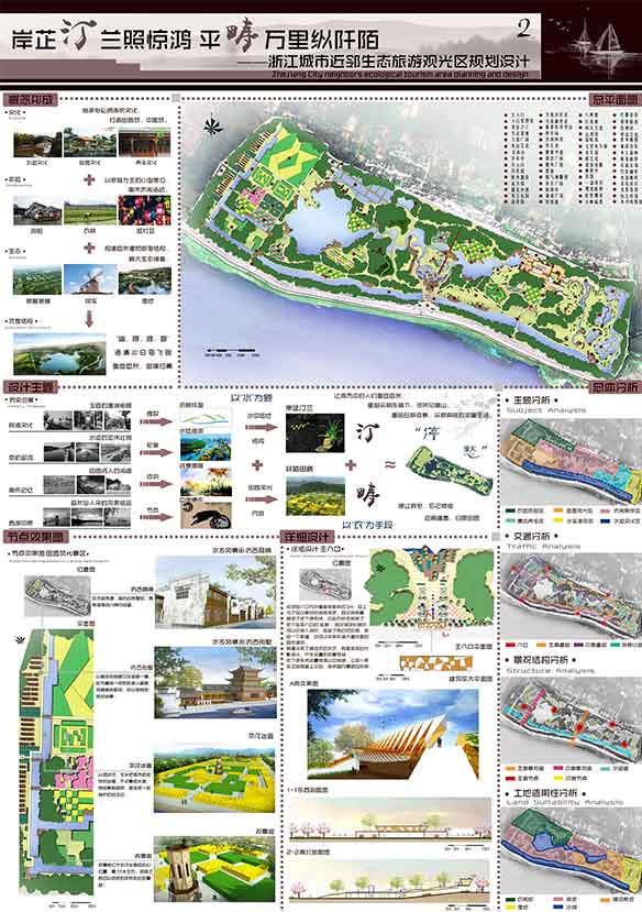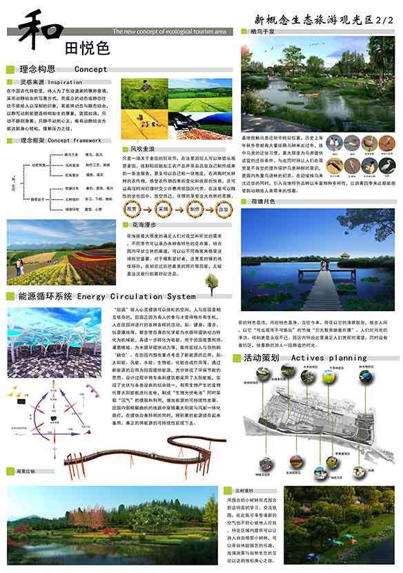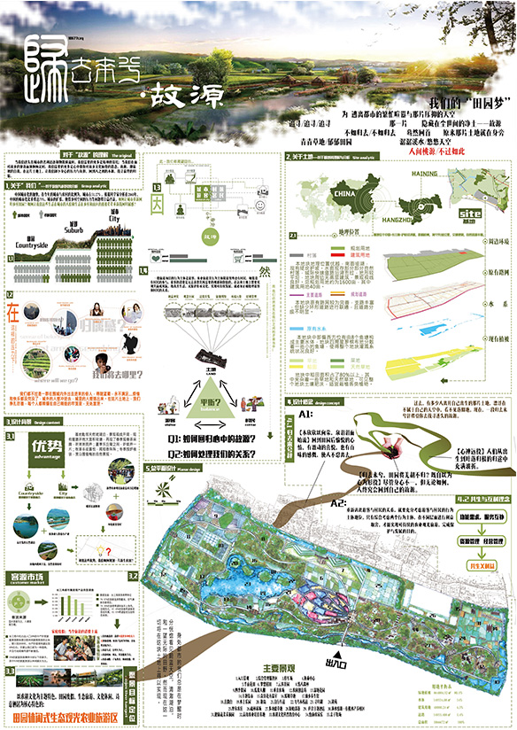 根据大赛提供的项目,以“生态、绿色、休闲、旅游”的现代社会生活理念,在保护、利用自然资源的原则下,针对大型城市郊区旅游方兴未艾的发展趋势,设计打造具有针对性、社会效益与经济效益相结合的城市近邻新概念生态旅游观光区。本届大赛共收到来自全国20多所高校的有效参赛作品109组,较首届作品数量增加了51%。