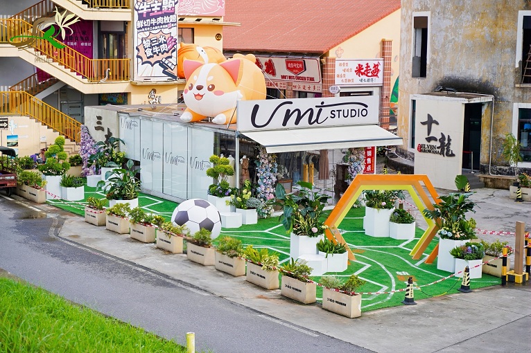 设计团队以足球破网的优美弧线为空间主线,巧妙提取足球多面体表皮元素,通过模块化组合打造出兼具花箱与休憩功能的活力组团,淋漓尽致地演绎了绿茵场上的速度与激情,最终构建出集视觉震撼力、深度互动性与长效运营价值于一身的特色景观空间。