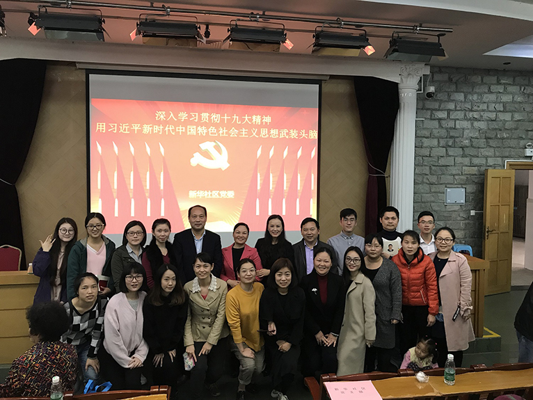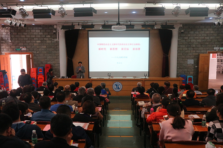 随后,会议特别邀请福田区委党校陈自元教授为大家上了一堂生动的党课,带领党员学习领会十九大报告精神。陈教授将十九大报告精神概括为“四个新”——新时代、新思想、新目标、新部署,并进行逐一解读,让大家对习近平新时代中国特色社会主义思想的丰富内涵有了深入的理解。党的十九大将习近平新时代中国特色社会主义思想确立为党必须长期坚持的指导思想,具有划时代的意义。习近平新时代中国特色社会主义思想,回应了坚持和发展中国特色社会主义的实践要求,为在新时代推进党和国家事业提供了思想指南,是全党全军全国各族人民坚不可摧的精神支柱和取之不竭的力量源泉。我们要切实增强学习贯彻的自觉性和坚定性,高举习近平新时代中国特色社会主义思想伟大旗帜,为中国特色社会主义伟大事业不懈奋斗。