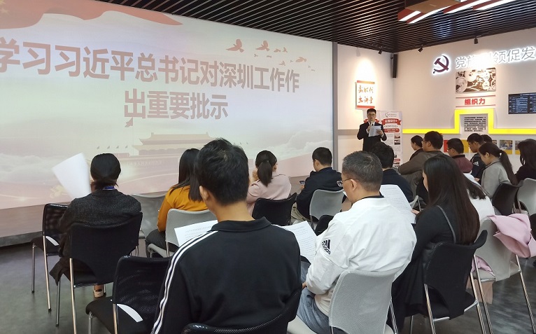 活动开始后,党员同志首先学习了习近平总书记对深圳工作的重要批示。批示全文共289个字,是总书记时隔四年又一次专门对深圳工作作出的重要批示,为深圳未来40年发展定了向、定了纲。总书记希望深圳市广大干部群众继续解放思想、真抓实干,改革开放再出发,不断推动深圳工作开创新局面、再创新优势、铸就新辉煌,在新时代走在前列、新征程勇当尖兵。