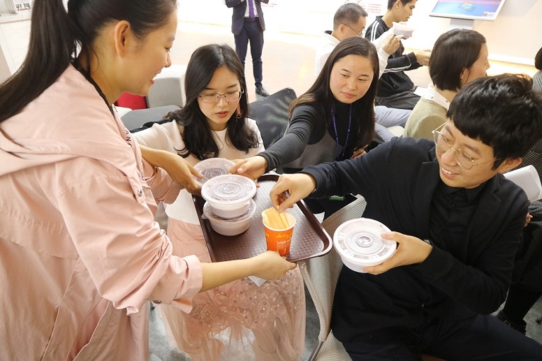 微党课环节结束后,国创中心党委向在场党员派发了精心准备的幸运腊八粥,并组织开展了“传统节俗”知识竞答,吸引党员同志积极参与。腊八粥以八方食物与米共煮,有合聚万物、调和千灵之意,寓意“圆满、和谐”。这一贴心之举,令党员同志倍感温暖。