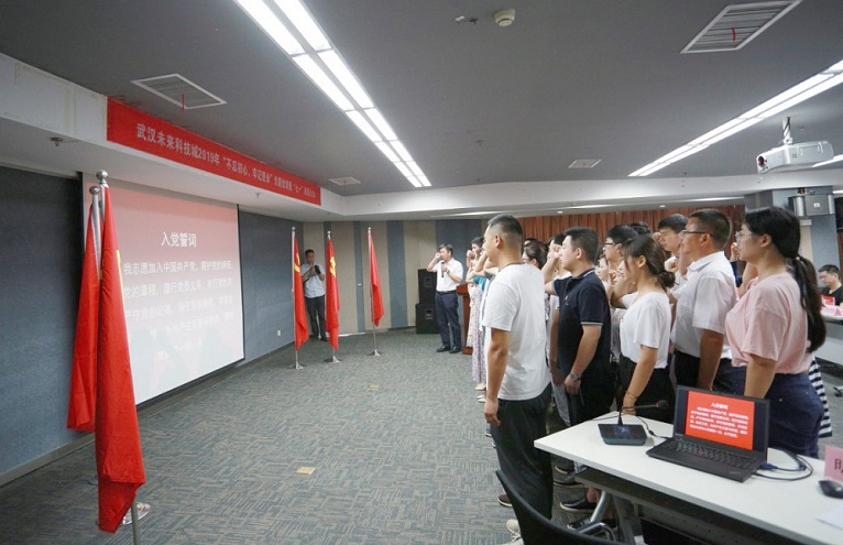 最后,张国桥同志宣布了武汉未来科技城综合党委2019年党员发展对象和预备党员转正名单,并引领党员们宣读入党誓词。张国桥同志表示,希望各位同志在今后的工作生活中时刻记住今天宣誓的神圣时刻,坚定理想信念,坚守精神家园,牢记神圣使命,继承和发扬党的优良传统,牢记全心全意为人民服务的宗旨,在各自岗位上加倍努力工作学习,充分发挥先锋模范作用,努力争做一名合格的共产党员。