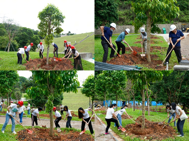 接下来,党员们来到项目现场参与绿化种植。大家有的负责铲土,有的负责扶树,有的负责浇水,将一棵棵树苗种植到项目现场,为鹅颈水库绿化环境提升贡献了一份力量。