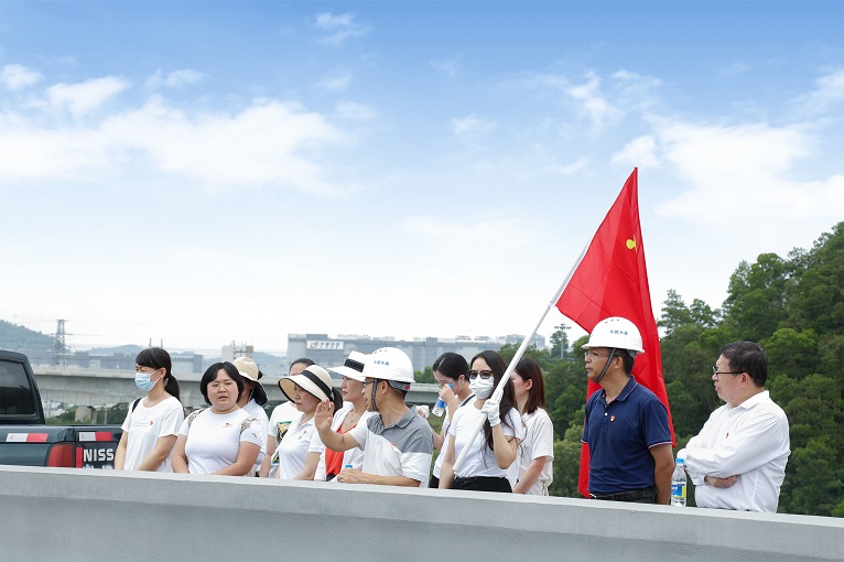 完成植树后,鹅颈水库管理所所长李良庚带领党员们参观了鹅颈水库大坝,并为大家介绍了鹅颈水库的现状和重要作用,以及景观提升项目的建设情况。党员们站在大坝上,一边听着李所长的介绍,一边欣赏着满眼绿意,感受着微风拂面,顿觉心旷神怡。